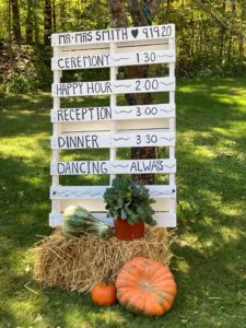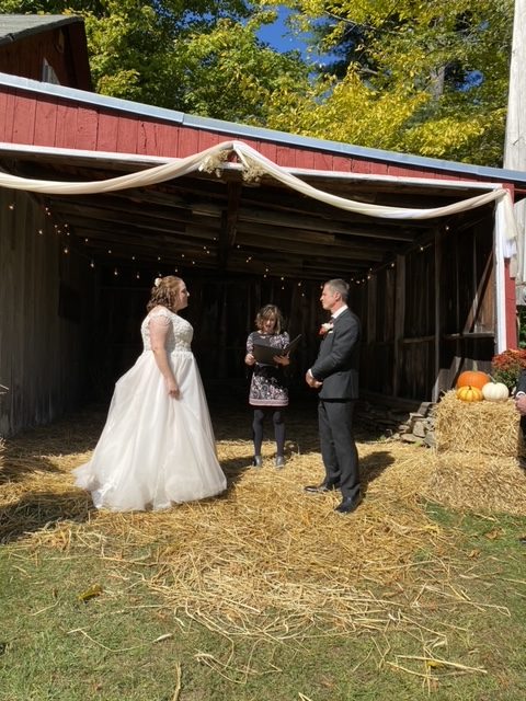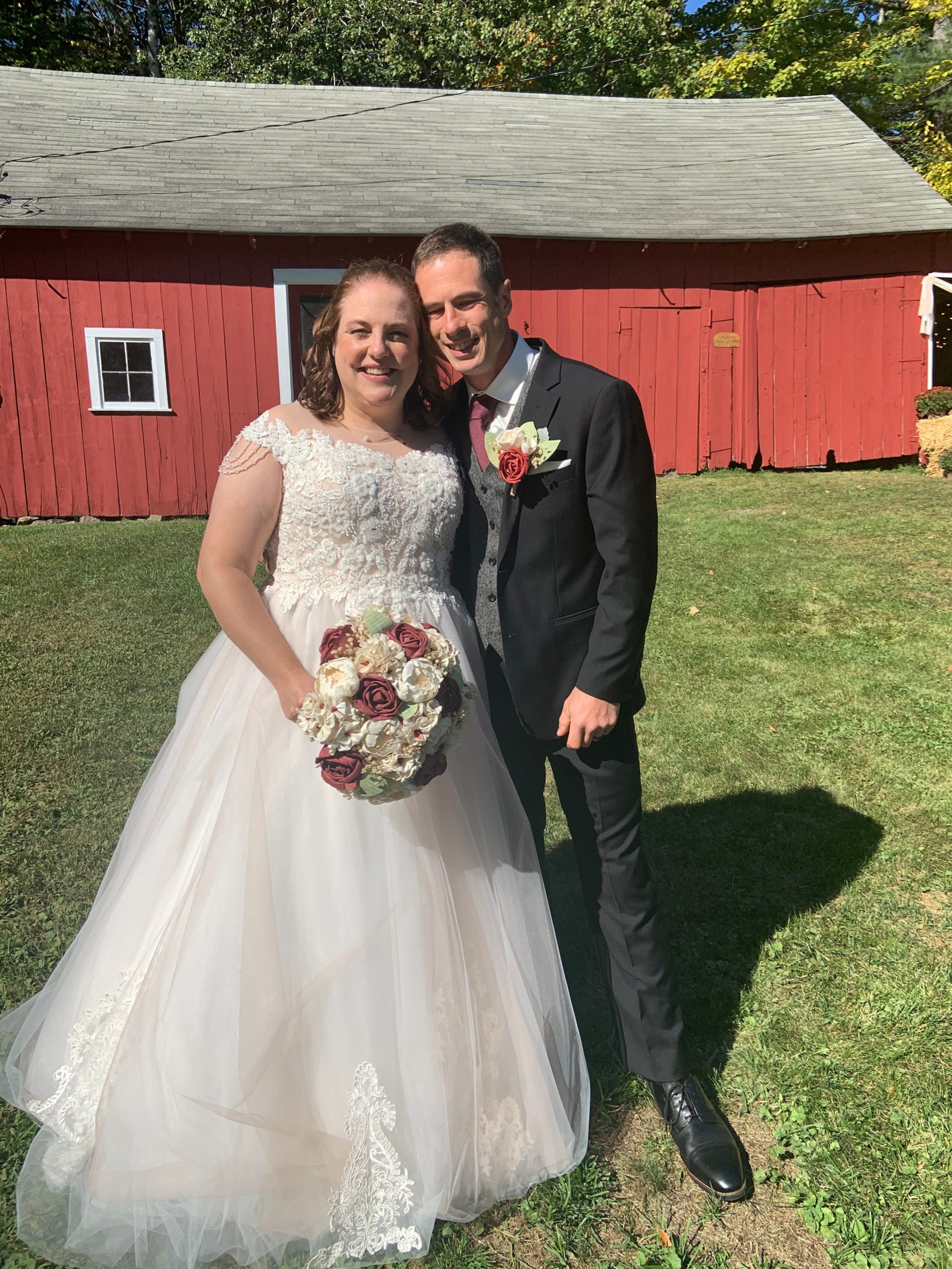 We could not have asked for a better day, it was sunny, clear, and crisp. We tied the knot under the opening of our barn, which was guilded with seasonal accents and lights. We were surrounded by at least some of our close family & friends, as well as the perfect backdrop of our property, including a country barn, stone-wall, apple trees, and a stream.